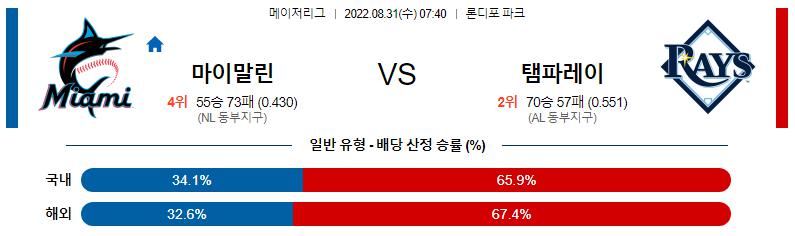 8월 31일 07:40 MLB 마이애미 : 탬파베이 MLB분석