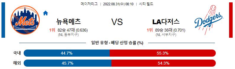 8월 31일 08:10 MLB 뉴욕메츠 : LA다저스 MLB분석