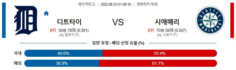 8월 31일 08:10 MLB 디트로이트 : 시애틀 MLB분석