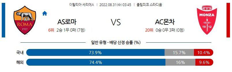 열람중 【세리에A】 8월31일 AS로마 vs AC몬차 2022.08.30 616