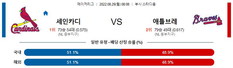 8월 29일 08:08 MLB 세인트루이스 : 애틀랜타 MLB분석