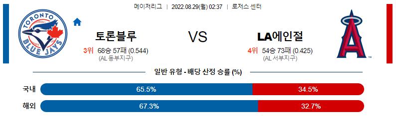 8월 29일 02:37 MLB 토론토 : LA에인절스 MLB분석
