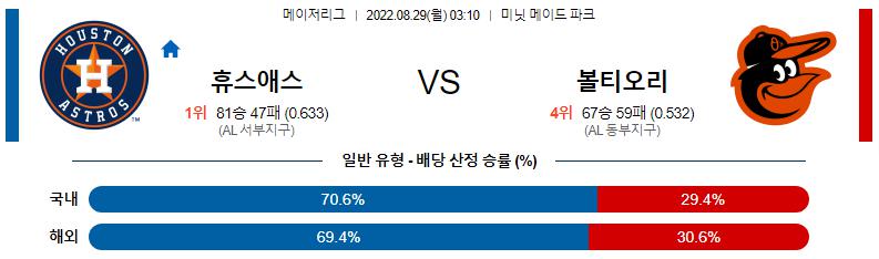 8월 29일 03:10 MLB 휴스턴 : 볼티모어 MLB분석