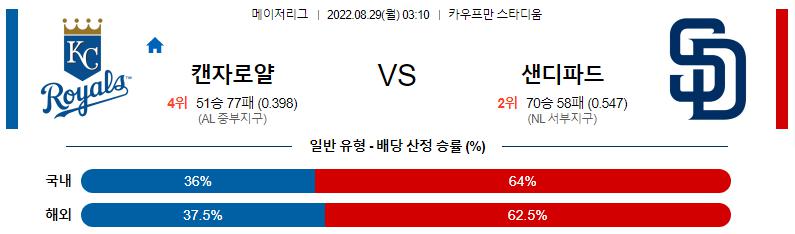 8월 29일 03:10 MLB 캔자스시티 : 샌디에이고 MLB분석