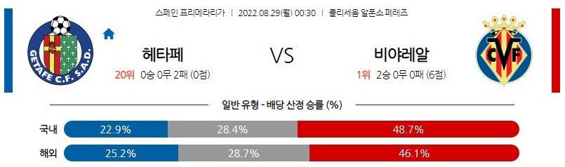 【Laliga】 8월29일 헤타페 vs 비야레알