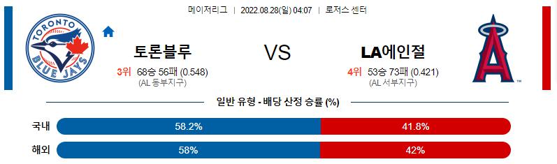 8월 28일 04:07 MLB 토론토 : LA에인절스 MLB분석