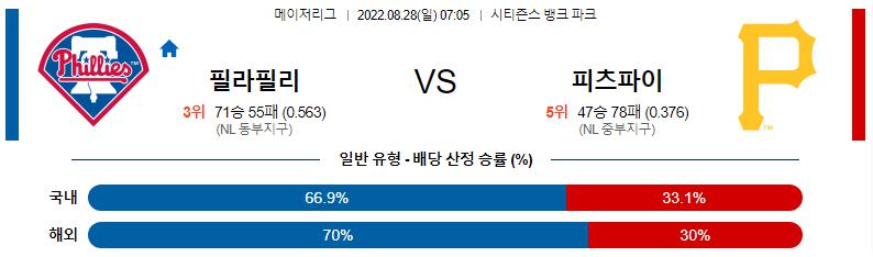 8월 28일 07:05 MLB 필라델피아 : 피츠버그 MLB분석