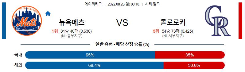8월 28일 08:10 MLB 뉴욕메츠 : 콜로라도 MLB분석