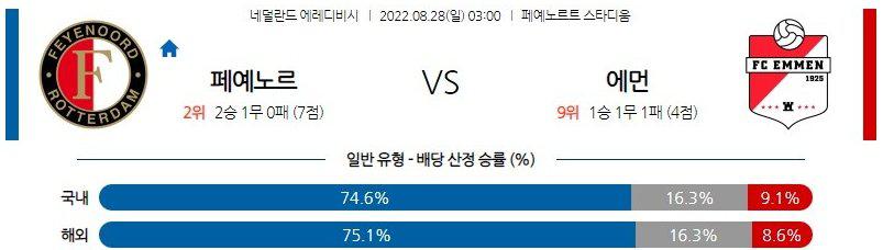 【Eredevisie】 8월28일 페예노르트 vs FC엠먼