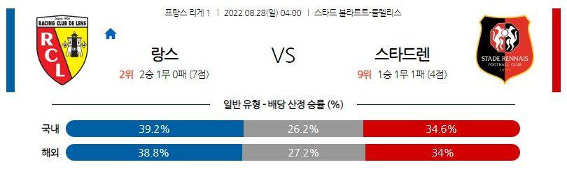 【리그앙】 8월28일 RC랑스 vs 스타드렌