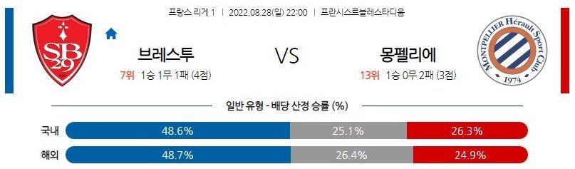 【리그앙】 8월28일 스타드브레스트 vs 몽펠리에