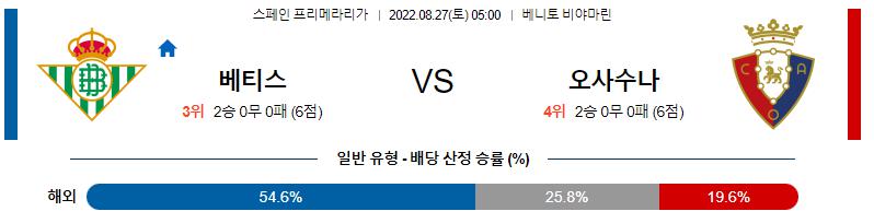 스페인 프리메라리가 8월 27일 05:00 레알 베티스 : CA 오사수나
