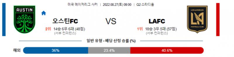 미국 MLS 8월 27일 09:00 오스틴 FC : 로스앤젤레스 FC