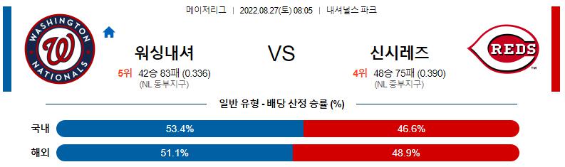 8월 27일 08:05 MLB 워싱턴 : 신시내티 MLB분석