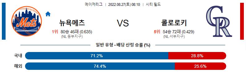 8월 27일 08:10 MLB 뉴욕 메츠 : 콜로라도 MLB분석