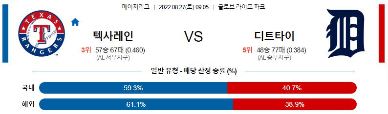 8월 27일 09:05 MLB 텍사스 : 디트로이트 MLB분석
