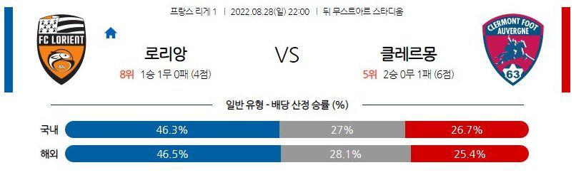 열람중 【리그앙】 8월28일 FC로리앙 vs 끌레르몽 2022.08.27 508