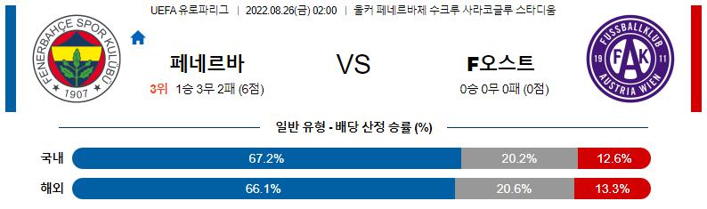 UEFA 유로파리그 8월 26일 02:00 페네르바흐체 : FK 아우스트리아 빈