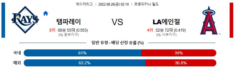 8월 26일 02:10 MLB 템파베이 : LA에인절스 MLB분석
