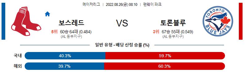 8월 26일 08:10 MLB 보스턴 : 토론토 MLB분석