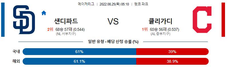 8월 25일 05:10 MLB 샌디에이고 : 클리블랜드 MLB분석