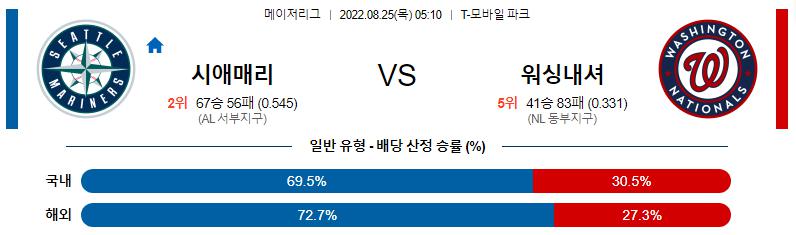 8월 25일 05:10 MLB 시애틀 : 워싱턴 MLB분석