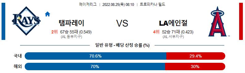 8월 25일 08:10 MLB 탬파베이 : LA에인절스 MLB분석