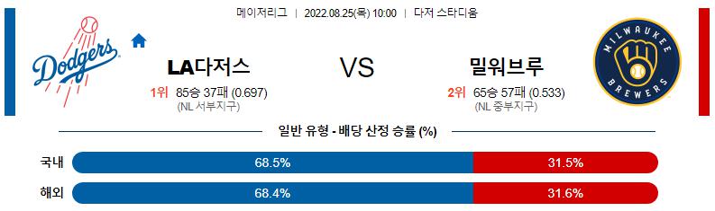 8월 25일 10:00 MLB LA다저스 : 밀워키 MLB분석