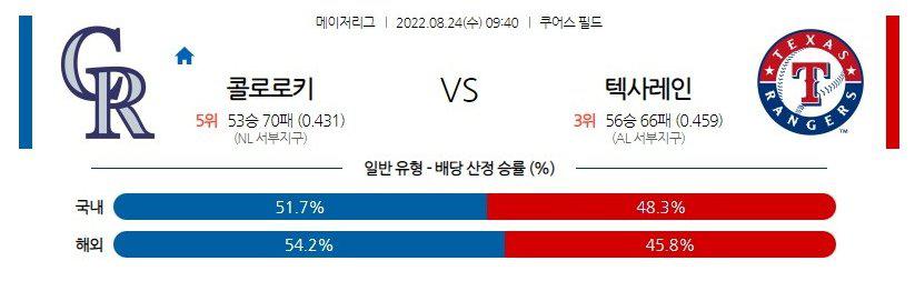 【MLB】 8월24일 콜로라도 vs 텍사스