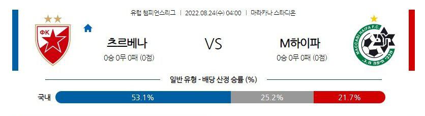 [UEFA챔피언스리그] 8월24일 츠르베나 즈베즈바 vs 마카비 하이파