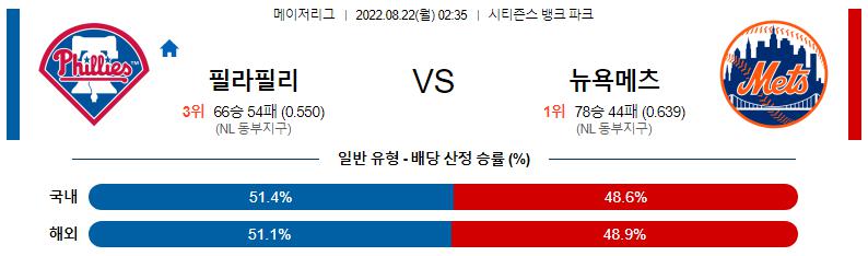 8월 22일 02:35 MLB 필라델피아 : 뉴욕 메츠