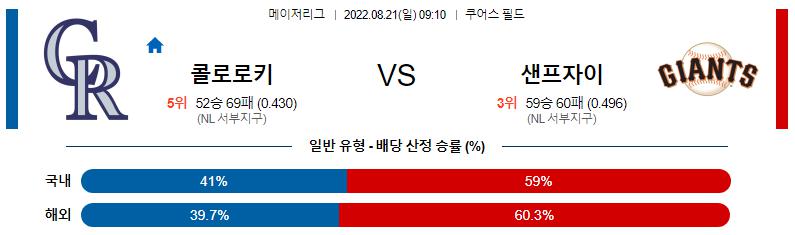 8월 21일 09:10 MLB 콜로라도 : 샌프란시스코 MLB분석