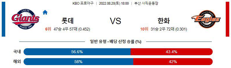 한국프로야구 롯데 자이언츠 한화 이글스의 경기가 오는 토요일(8/20) 18:00 롯데의 홈 구장인 부산 사직야구장에서 열릴 예정입니다. 롯데 자이언츠 한화 이글스 양 팀 간의 이번 주말 2연전 가운데 첫번째로 펼쳐지는 경기인데요, 양 팀의 이번시즌 맞대결 경기에서는 롯데가 8승3패로 우위를 보이고 있습니다.