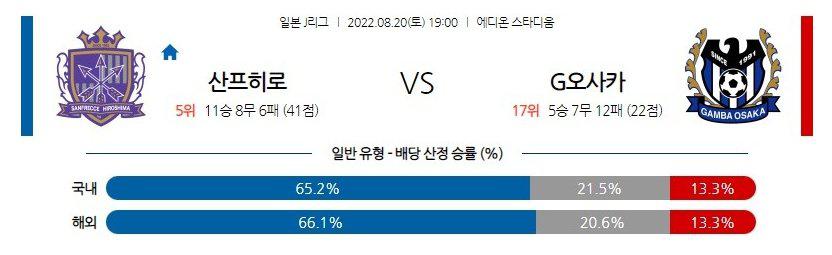 【J리그】 8월20일 산프레체 히로시마 vs 감바 오사카