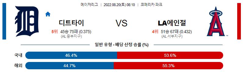 8월 20일 08:10 MLB 디트로이트 : LA에인절스 MLB분석