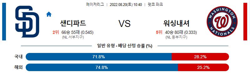 8월 20일 10:40 MLB 샌디에이고 : 워싱턴 MLB분석