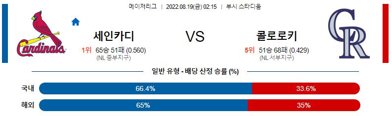 8월 19일 02:15 MLB St.루이스 : 콜로라도 MLB분석
