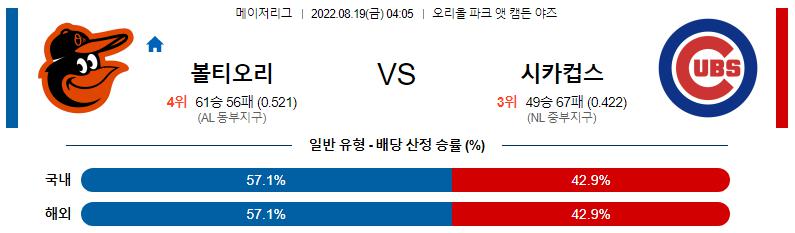 8월 19일 04:05 MLB 볼티모어 : C.컵스 MLB분석