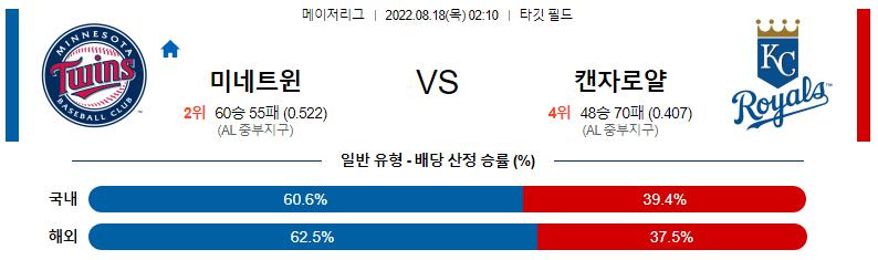 8월 18일 02:10 MLB 미네소타 : 캔자스시티 MLB분석