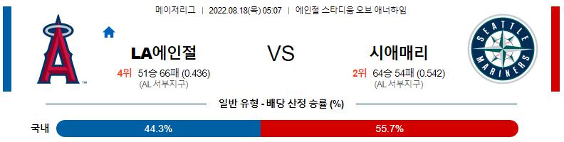 8월 18일 05:07 MLB LA에인절스 : 시애틀 MLB분석