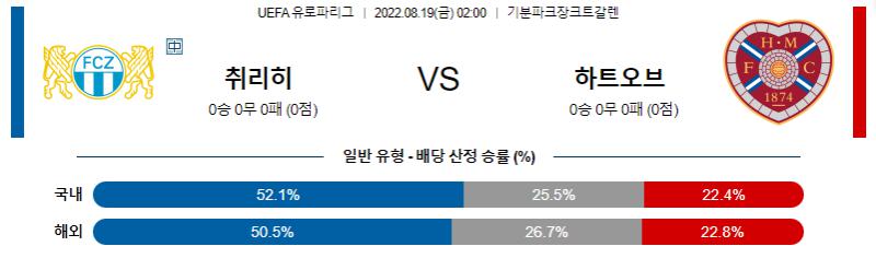 UEFA 유로파리그 8월 19일 02:00 FC 취리히 : 하트 오브 미들로시언 FC