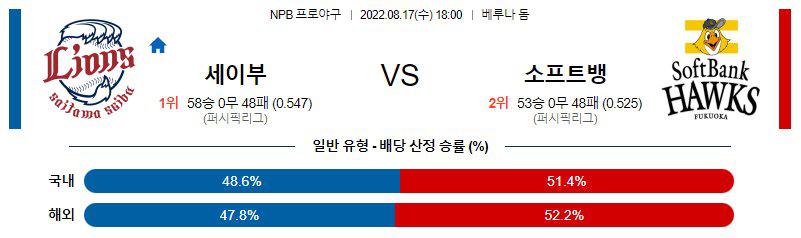 【NPB】 8월17일 세이부 vs 소프트뱅크