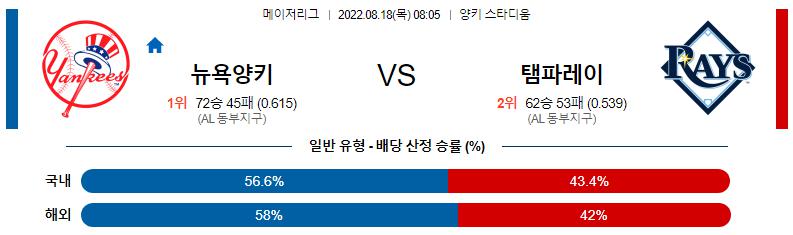 8월 18일 08:05 MLB 뉴욕 양키스 : 탬파베이 MLB분석