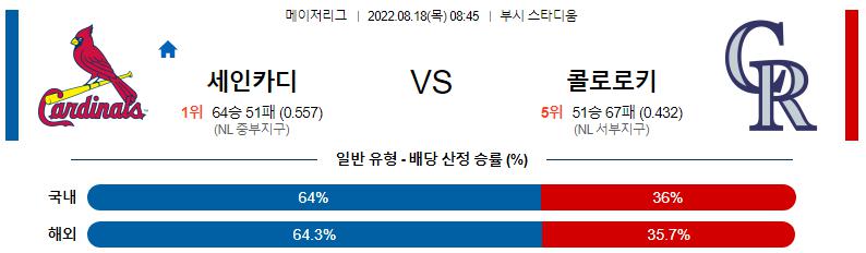 8월 18일 08:45 MLB St.루이스 : 콜로라도 MLB분석