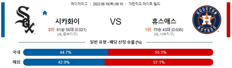 열람중 8월 18일 09:10 MLB C.화이트삭스 : 휴스턴 MLB분석 2022.08.17 550