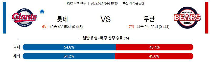 열람중 【KBO】 8월17일 롯데 vs 두산 2022.08.17 587