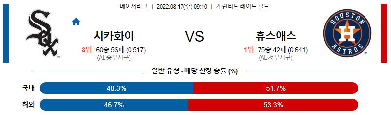 열람중 8월 17일 09:10 MLB C.화이트삭스 : 휴스턴 MLB분석 2022.08.17 446