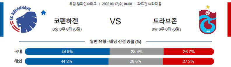 [UEFA챔피언스리그] 8월17일 코펜하겐 vs 트라브존스포르