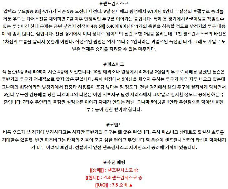 【MLB】 8월 15일 샌프란시스코 vs 피츠버그