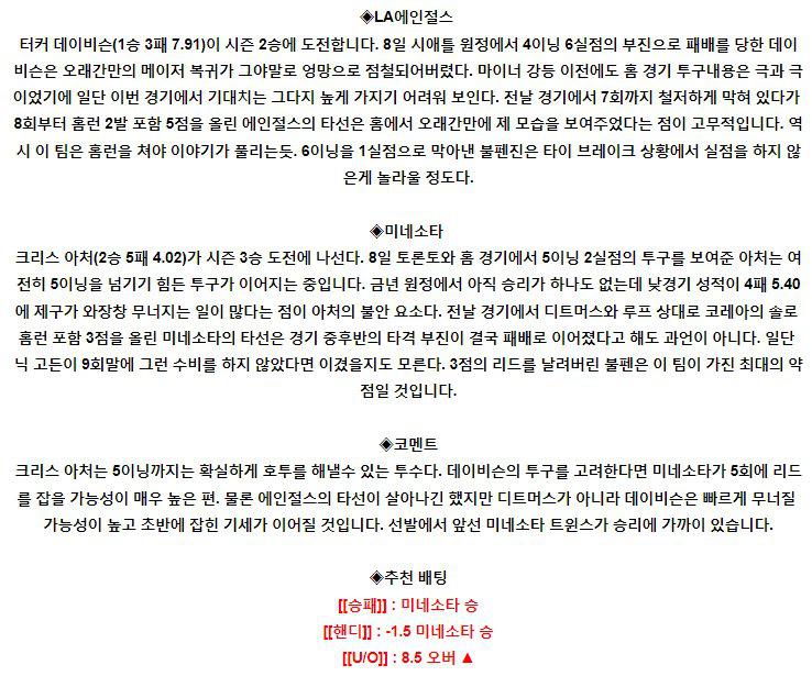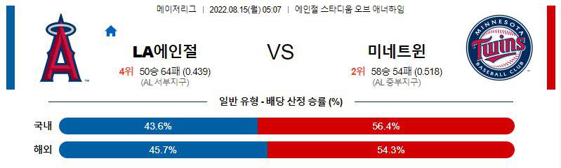 【MLB】 8월 15일 LA에인절스 vs 미네소타